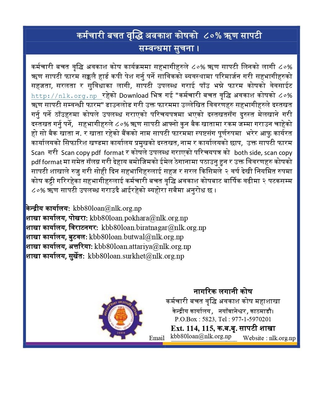 Employees Saving Growth Retirement Scheme is one of the major schemes introduced to the employees. A certain amount of fund is deducted from the salary and is deposited under this scheme in a monthly basis. Every offices or organization deposits the deducted amount to the designated collection center. The branches of Commercial Banks and Nepal Rastra Bank are used as a designated collection centers in different parts of the countries.